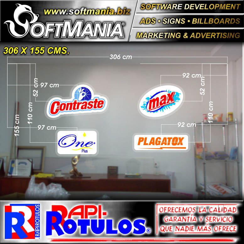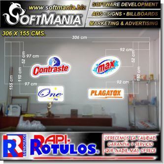This product Led Light Box with Irregular Shape and Acrylic Face with Text Logos of Contraste, Max, One and Plagatox Advertising Sign for Factory of Cleaning Products brand Softmania Advertising Dimensions 10x5.1 Foot and many more are available wholesale and retail in SOFTMANIA. Ask for code SMRR23113015. Enjoy great offers every day!