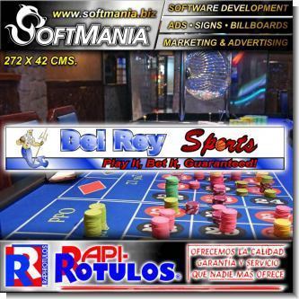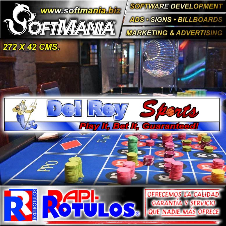 | DESCRIPTION | translucent vinyl canvas light box with text del rey sports, play it, bet it, guaranteed! |
