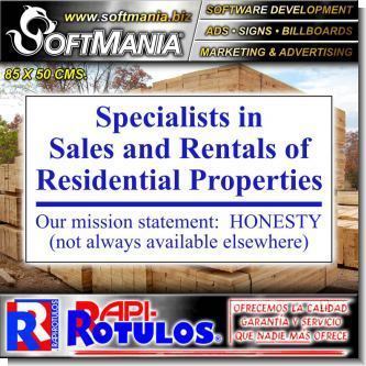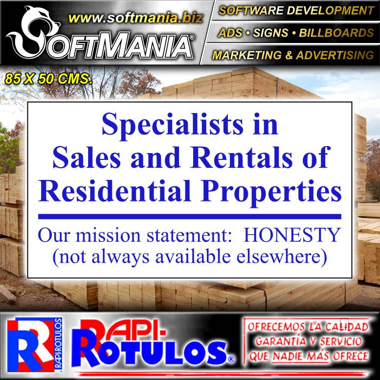This product Iron Sheet with Full Color Adhesive Vinyl Labeling with Text Epecialists in Sales and Rentals of Residential Properties Advertising Sign for Real Estate brand Softmania Advertising Dimensions 33.5x19.7 Inches and many more are available wholesale and retail in SOFTMANIA. Ask for code SMRR23113009. Enjoy great offers every day!