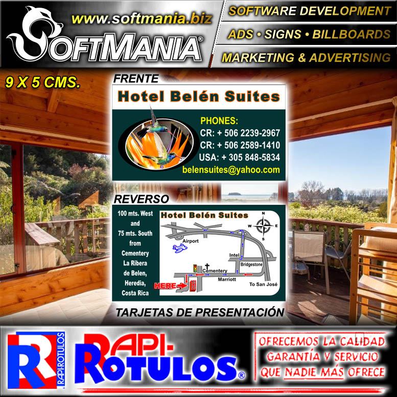 SMRR24012939: Business Cards Double Sided with Text Hotel Belen Suites Commercial Stationery for Hotel brand Softmania Advertising Dimensions 3.5x2 Inches