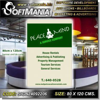 This advertising sign from the excellent brand Softmania ADS was specially designed for administrative office with the best quality and price. With the right message to reach your target market! Made with highly durable and resistant materials: cut vinyl, plastic banner, steel holes, rope to tie