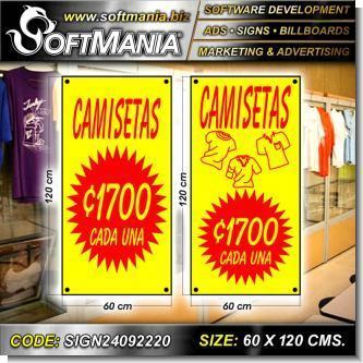 This product Cut Vinyl Banner with Metal Holes to Tie with Text Tshirts at 1700 Each Advertising Sign for Clothing Store brand Softmania Ads Dimensions 23.6x47.2 Inches and many more are available wholesale and retail in SOFTMANIA. Ask for code SIGN24092220. Enjoy great offers every day!