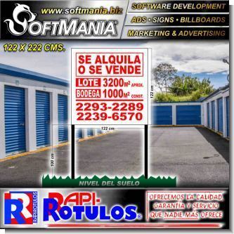 This advertising sign from the excellent brand Softmania Rotulos was specially designed for real estate with the best quality and price. With the right message to reach your target market! Made with highly durable and resistant materials: industrial iron tube, smooth metal sheet, cut vinyl adhesive