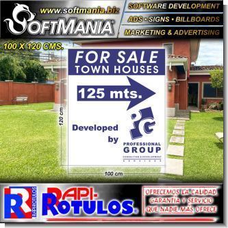 This advertising sign from the excellent brand Softmania Advertising was specially designed for real estate with the best quality and price. With the right message to reach your target market! Made with highly durable and resistant materials: smooth iron, full color vinyl, solvent based ink, screws