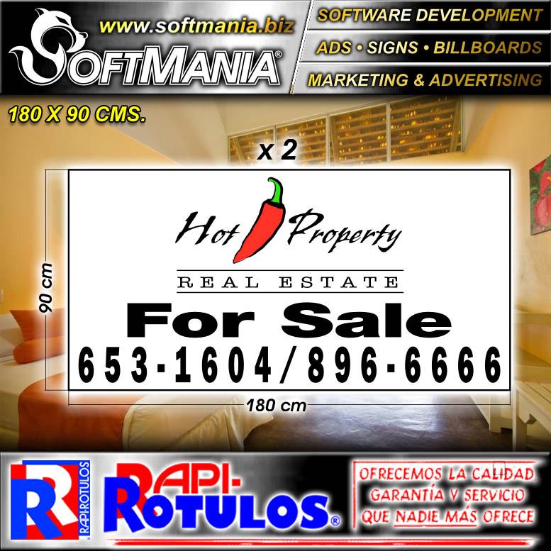 | DESCRIPTION | iron sheet with full color adhesive vinyl labeling with text hot property, real estate - for sale |