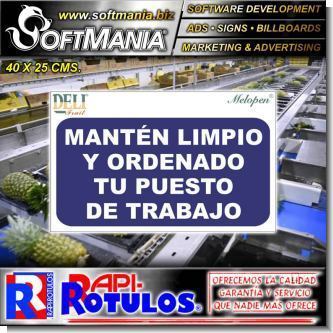 This product Pvc 3 Millimeters with Full Color Printing with Text Keep Your Workplace Clean and Tidy Advertising Sign for Fruit Packing Plant brand Softmania Rotulos Dimensions 15.7x9.8 Inches and many more are available wholesale and retail in SOFTMANIA. Ask for code SMRR23090348. Enjoy great offers every day!