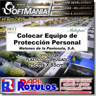 This product Pvc 3 Millimeters with Full Color Printing with Text Place Personal Protective Equipment Advertising Sign for Fruit Packing Plant brand Softmania Rotulos Dimensions 33.5x9.8 Inches and many more are available wholesale and retail in SOFTMANIA. Ask for code SMRR23090339. Enjoy great offers every day!