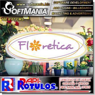 This advertising sign from the excellent brand Softmania Rotulos was specially designed for flower shop with the best quality and price. With the right message to reach your target market! Made with highly durable and resistant materials: pvc plastic 10 millimeter, metal wall anchors, paint for plastic