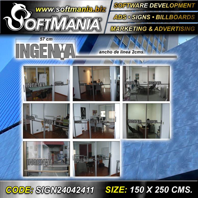 Este producto Rotulo Publicitario Adhesivo Tipo Sandblastiado en Ventanales y Puertas con Texto Rotulacion de Ventanales de Oficina para Oficina de Arquitectos marca Softmania Ads de Dimensiones 1.5x2.5 Metros y muchos mas estan disponibles al por mayor y al detalle en SOFTMANIA. Pregunta por el codigo SIGN24042411. Aprovecha grandiosas ofertas todos los dias!