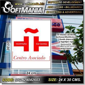 Este producto Rotulo Publicitario Acrilico Blanco 3 Milimetros con Rotulacion en Vinil de Corte con Texto Instituto Cervantes, Centro Asociado para Centro Educativo marca Softmania Ads de Dimensiones 30x24 Centimetros y muchos mas estan disponibles al por mayor y al detalle en SOFTMANIA. Pregunta por el codigo SIGN24042603. Aprovecha grandiosas ofertas todos los dias!