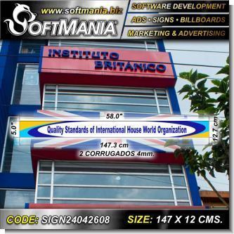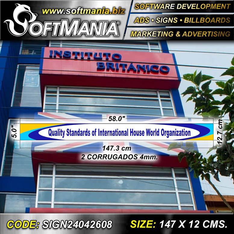 Este producto Rotulo Publicitario Plastico Corrugado con Ojetes de Metal Rotulacion en Vinil de Corte con Texto Estandares de Calidad de La Organizacion Mundial International House para Centro Educativo marca Softmania Ads de Dimensiones 1.5x0.1 Metros y muchos mas estan disponibles al por mayor y al detalle en SOFTMANIA. Pregunta por el codigo SIGN24042608. Aprovecha grandiosas ofertas todos los dias!