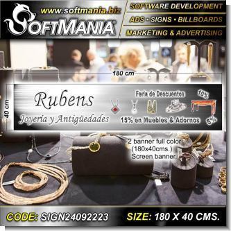 Este producto Rotulo Publicitario PVC 3 Milimetros con Rotulacion Full Color con Texto Rubens Joyeria y Antiguedades para Tienda de Joyeria marca Softmania Ads de Dimensiones 1.8x0.4 Metros y muchos mas estan disponibles al por mayor y al detalle en SOFTMANIA. Pregunta por el codigo SIGN24092223. Aprovecha grandiosas ofertas todos los dias!