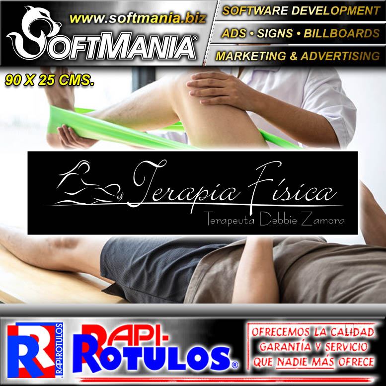 Este rotulo publicitario de la excelente marca Softmania Rotulos fue diseñado especialmente para centro de terapia fisica con la mejor calidad y precio. Con el mensaje correcto para llegar a su mercado meta! Fabricado con materiales de alta durabilidad y resistencia: lamina acrilica, vinil de corte