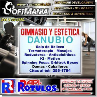 Este producto Rotulo Publicitario Aluminio Acm 4mm con Rotulacion en Vinil de Corte con Texto Gimnasio y Estetica Danubio para Gimnasio marca Softmania Advertising de Dimensiones 1.2x0.9 Metros y muchos mas estan disponibles al por mayor y al detalle en SOFTMANIA. Pregunta por el codigo SMRR23112924. Aprovecha grandiosas ofertas todos los dias!