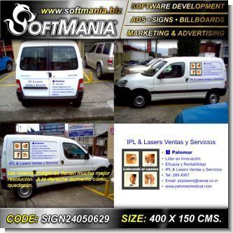 Este producto Rotulo Publicitario Publicidad para Flotilla Vehicular de Empresa con Texto Microbus Rotulada, Ipl Lasers Ventas y Servicios para Clinica Estetica marca Softmania Ads de Dimensiones 35x50 Centimetros y muchos mas estan disponibles al por mayor y al detalle en SOFTMANIA. Pregunta por el codigo SIGN24050629. Aprovecha grandiosas ofertas todos los dias!
