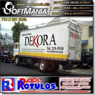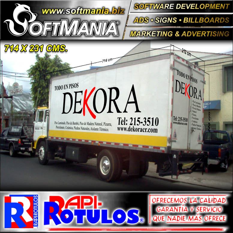 | DESCRIPCION | publicidad para flotilla vehicular de empresa dos caras con texto camion dekora, todo en pisos |