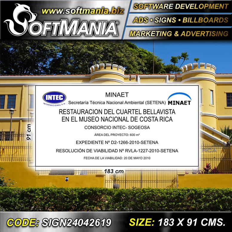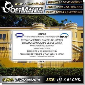 Este producto Rotulo Publicitario Lamina de Hierro con Rotulado de Vinil Adhesivo Full Color con Texto Rotulo Reglamentario Setena Proyecto Restauracion para Empresa Constructora marca Softmania Ads de Dimensiones 0.8x1 Metros y muchos mas estan disponibles al por mayor y al detalle en SOFTMANIA. Pregunta por el codigo SIGN24042619. Aprovecha grandiosas ofertas todos los dias!