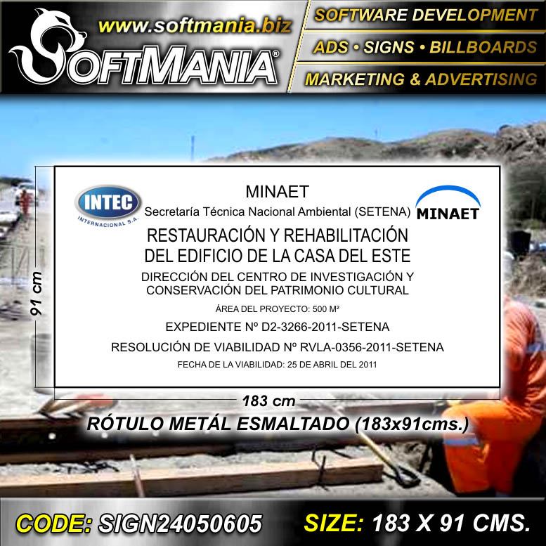 Este producto Rotulo Publicitario Lamina de Hierro con Rotulado de Vinil de Corte con Texto Rotulo Reglamentario de Setena Restauracion y Rehabilitacion de Edificio para Empresa Constructora marca Softmania Ads de Dimensiones 1.8x0.9 Metros y muchos mas estan disponibles al por mayor y al detalle en SOFTMANIA. Pregunta por el codigo SIGN24050605. Aprovecha grandiosas ofertas todos los dias!