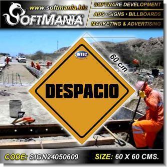 Este producto Material Publicitario Lamina de Hierro con Rotulado de Vinil de Corte con Texto Conduzca Despacio para Empresa Constructora marca Softmania Ads de Dimensiones 60x60 Centimetros y muchos mas estan disponibles al por mayor y al detalle en SOFTMANIA. Pregunta por el codigo SIGN24050609. Aprovecha grandiosas ofertas todos los dias!