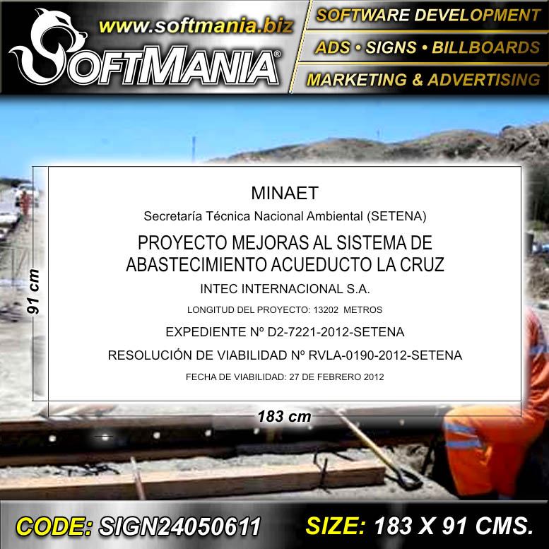 Este producto Rotulo Publicitario Lamina de Hierro con Rotulado de Vinil Adhesivo Full Color con Texto Rotulo Reglamentario de Setena Mejoras Abastecimiento Acueducto La Cruz para Empresa Constructora marca Softmania Ads de Dimensiones 1.8x0.9 Metros y muchos mas estan disponibles al por mayor y al detalle en SOFTMANIA. Pregunta por el codigo SIGN24050611. Aprovecha grandiosas ofertas todos los dias!