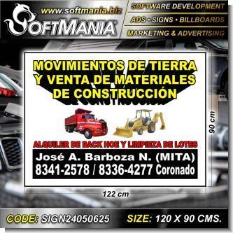 Este producto Rotulo Publicitario Lamina de Hierro con Rotulado de Vinil Adhesivo Full Color con Texto Movimientos de Tierra y Venta de Materiales de Construccion para Empresa Constructora marca Softmania Ads de Dimensiones 1.2x0.9 Metros y muchos mas estan disponibles al por mayor y al detalle en SOFTMANIA. Pregunta por el codigo SIGN24050625. Aprovecha grandiosas ofertas todos los dias!