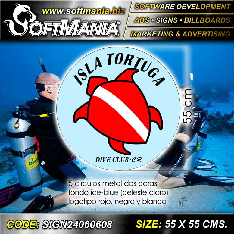 Este producto Rotulo Publicitario Lamina de Hierro con Rotulado de Vinil Adhesivo Full Color con Texto Isla Tortuga Dive Club Cr para Escuela de Buceo marca Softmania Ads de Dimensiones 55x55 Centimetros y muchos mas estan disponibles al por mayor y al detalle en SOFTMANIA. Pregunta por el codigo SIGN24060608. Aprovecha grandiosas ofertas todos los dias!