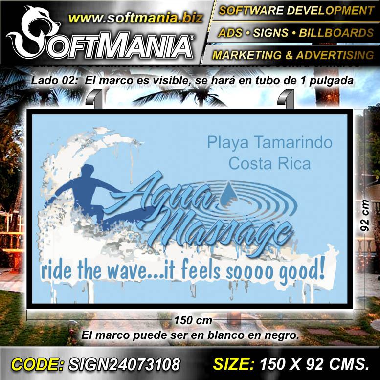 Este producto Rotulo Publicitario Lamina de Hierro con Rotulado de Vinil de Corte con Marco y Poste de Tubo de Hierro Dos Caras con Texto Masaje Agua, Monta La Ola Se Siente Tan Bien para Hotel marca Softmania Ads de Dimensiones 1.5x0.9 Metros y muchos mas estan disponibles al por mayor y al detalle en SOFTMANIA. Pregunta por el codigo SIGN24073108. Aprovecha grandiosas ofertas todos los dias!