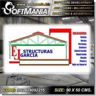 Este producto Rotulo Publicitario Lamina de Hierro con Rotulado de Vinil Adhesivo Full Color con Texto Estructuras Garcia Soldadura para Taller de Hojalateria marca Softmania Ads de Dimensiones 90x50 Centimetros y muchos mas estan disponibles al por mayor y al detalle en SOFTMANIA. Pregunta por el codigo SIGN24092215. Aprovecha grandiosas ofertas todos los dias!