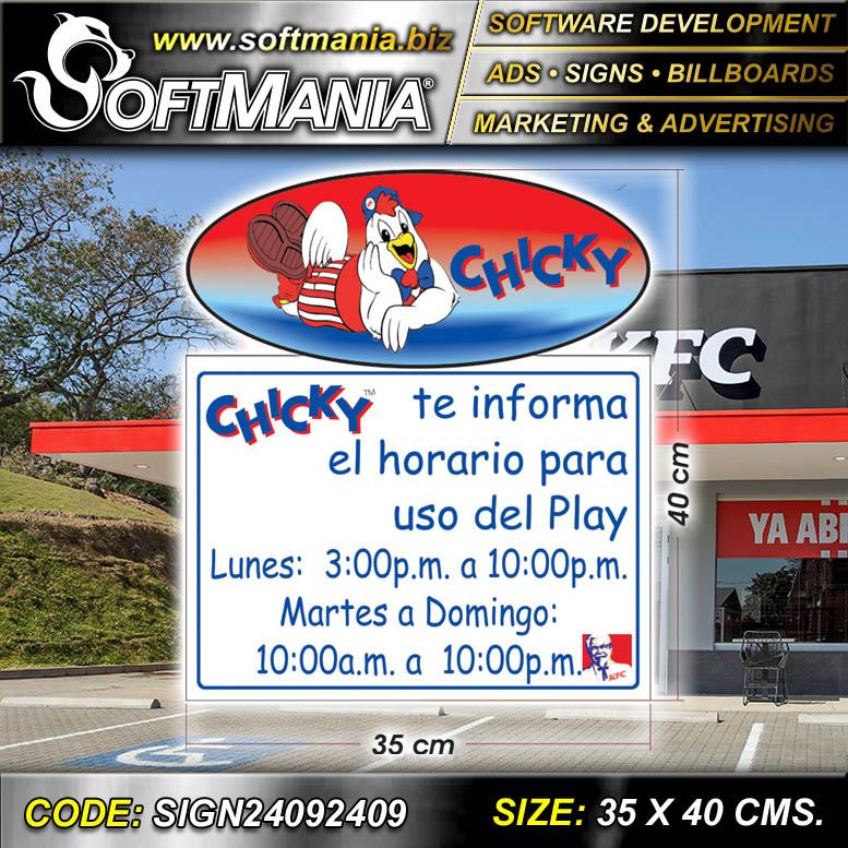 Este producto Rotulo Publicitario Lamina de Hierro con Rotulado de Vinil Adhesivo Full Color con Texto Horario del Atencion al Publico para Restaurante marca Softmania Ads de Dimensiones 35x40 Centimetros y muchos mas estan disponibles al por mayor y al detalle en SOFTMANIA. Pregunta por el codigo SIGN24092409. Aprovecha grandiosas ofertas todos los dias!