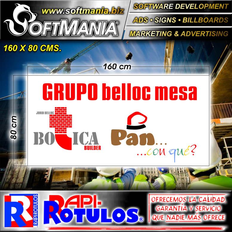 Este producto Rotulo Publicitario Lamina de Hierro con Rotulado de Vinil Adhesivo Full Color con Texto Grupo Belloc Mesa para Empresa Constructora marca Softmania Rotulos de Dimensiones 1.6x0.8 Metros y muchos mas estan disponibles al por mayor y al detalle en SOFTMANIA. Pregunta por el codigo SMRR23091609. Aprovecha grandiosas ofertas todos los dias!