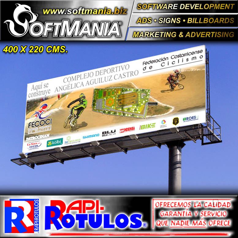 Este producto Rotulo Publicitario Valla Publicitaria de Lamina Metalica de Hierro con Estructura Tubular y Rotulacion Full Color con Texto Backpanel para Grabacion Fecoci para Asociacion Deportiva marca Softmania Rotulos de Dimensiones 4x2.2 Metros y muchos mas estan disponibles al por mayor y al detalle en SOFTMANIA. Pregunta por el codigo SMRR23100217. Aprovecha grandiosas ofertas todos los dias!