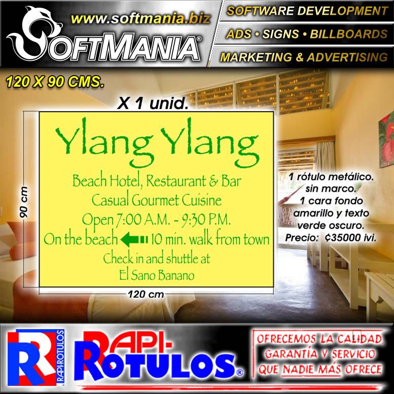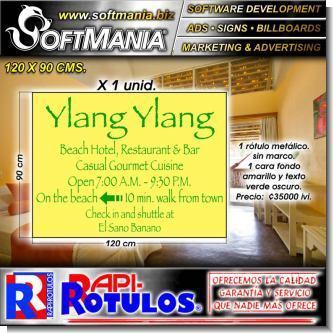 Este rotulo publicitario de la excelente marca Softmania ADS fue diseñado especialmente para hotel con la mejor calidad y precio. Con el mensaje correcto para llegar a su mercado meta! Fabricado con materiales de alta durabilidad y resistencia: hierro liso, vinil de corte, tornillos