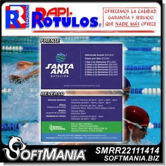 Este producto ROTULO PUBLICITARIO TARJETAS DE PRESENTACION DOS CARAS CON TEXTO HORARIO Y TARIFAS DE INSCRIPCION PARA ASOCIACION DEPORTIVA MARCA RAPIROTULOS DE DIMENSIONES 9X5 CENTIMETROS y muchos mas estan disponibles al por mayor y al detalle en SOFTMANIA. Pregunta por el codigo SMRR22111414. Aprovecha grandiosas ofertas todos los dias!