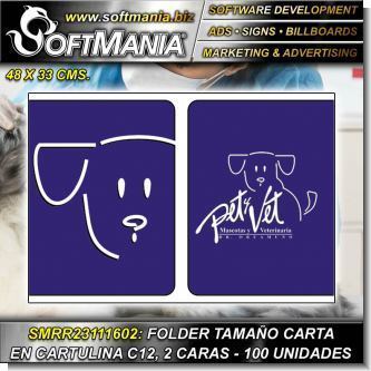 | DESCRIPCION | folder carpeta de cartulina c12 con impresion laser - paquete de 100 unidades dos caras con texto pet y vet, clinica veterinaria |