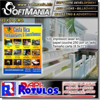 | DESCRIPCION | volante promocional impresion laser con laminado uv en papel couche con texto costa rica, backpackers and guesthouse |