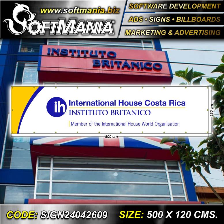 Este producto Rotulo Publicitario Banner Full Color con Ojetes de Metal para Amarrar con Texto Miembro de La Organizacion Mundial International House para Centro Educativo marca Softmania Ads de Dimensiones 5x1.2 Metros y muchos mas estan disponibles al por mayor y al detalle en SOFTMANIA. Pregunta por el codigo SIGN24042609. Aprovecha grandiosas ofertas todos los dias!