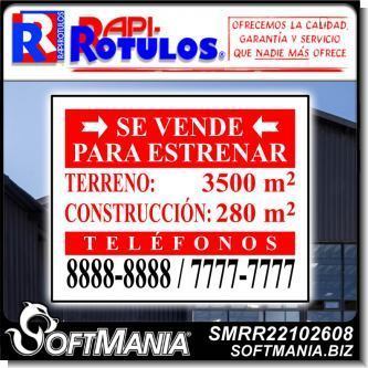 Este producto ROTULO PUBLICITARIO BANNER FULL COLOR CON OJETES DE METAL PARA AMARRAR CON TEXTO SE VENDE TERRENO CON CONSTRUCCION PARA BIENES RAICES MARCA RAPIROTULOS DE DIMENSIONES 1X0.8 METROS y muchos mas estan disponibles al por mayor y al detalle en SOFTMANIA. Pregunta por el codigo SMRR22102608. Aprovecha grandiosas ofertas todos los dias!