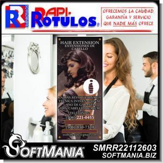 | DESCRIPCION | banner full color con ojetes de metal para amarrar con texto extensiones de cabello |