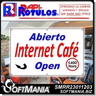 Este rotulo publicitario de la excelente marca RapiRotulos fue diseñado especialmente para cafe internet con la mejor calidad y precio. Con el mensaje correcto para llegar a su mercado meta! Fabricado con materiales de alta durabilidad y resistencia: banner full color, ojetes de acero, cuerda para amarrar
