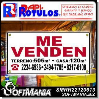 Este rotulo publicitario de la excelente marca RapiRotulos fue diseñado especialmente para bienes raices con la mejor calidad y precio. Con el mensaje correcto para llegar a su mercado meta! Fabricado con materiales de alta durabilidad y resistencia: banner full color, ojetes de acero, cuerda para amarrar
