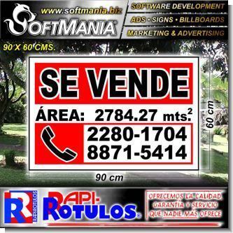Este rotulo publicitario de la excelente marca Softmania Rotulos fue diseñado especialmente para bienes raices con la mejor calidad y precio. Con el mensaje correcto para llegar a su mercado meta! Fabricado con materiales de alta durabilidad y resistencia: plastico pvc 3mm, vinil de corte