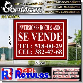 Este rotulo publicitario de la excelente marca Softmania Rotulos fue diseñado especialmente para bienes raices con la mejor calidad y precio. Con el mensaje correcto para llegar a su mercado meta! Fabricado con materiales de alta durabilidad y resistencia: hierro liso, vinil de corte, tornillos