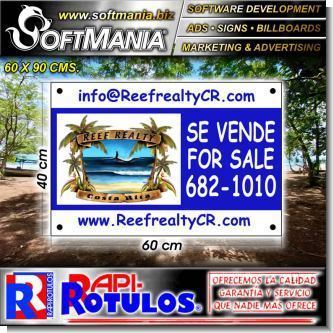 Este rotulo publicitario de la excelente marca Softmania ADS fue diseñado especialmente para bienes raices con la mejor calidad y precio. Con el mensaje correcto para llegar a su mercado meta! Fabricado con materiales de alta durabilidad y resistencia: hierro liso, vinil de corte, tornillos