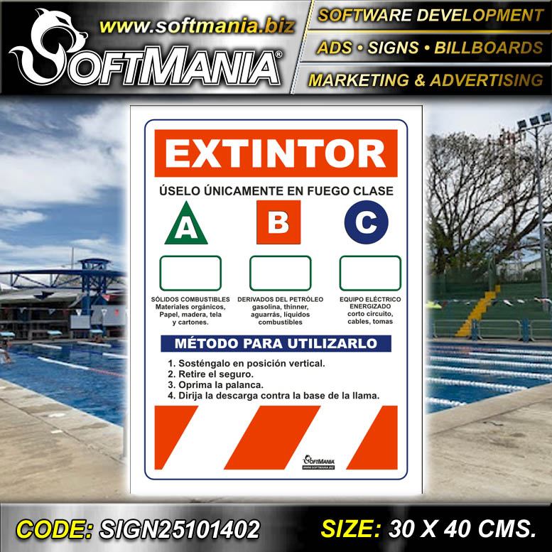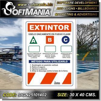Este producto Material Publicitario Prefabricado PVC 3 Milimetros con Texto Extintor para Fuego Tipo A, B y C para Asociacion Deportiva marca Softmania Ads de Dimensiones 30x40 Centimetros y muchos mas estan disponibles al por mayor y al detalle en SOFTMANIA. Pregunta por el codigo SIGN25101402. Aprovecha grandiosas ofertas todos los dias!