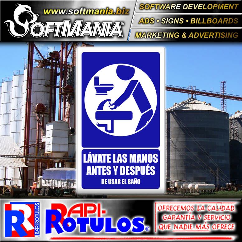 Este producto ROTULO PUBLICITARIO PVC 3 MILIMETROS CON ROTULACION FULL COLOR CON TEXTO LAVATE LAS MANOS ANTES Y DESPUES PARA FABRICA DE ALIMENTOS MARCA SOFTMANIA ROTULOS DE DIMENSIONES 30X50 CENTIMETROS y muchos mas estan disponibles al por mayor y al detalle en SOFTMANIA. Pregunta por el codigo SMRR23082911. Aprovecha grandiosas ofertas todos los dias!
