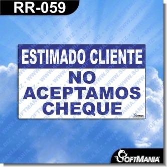 Este producto Rotulo Prefabricado - ESTIMADO CLIENTE NO ACEPTAMOS CHEQUE y muchos mas estan disponibles al por mayor y al detalle en SOFTMANIA. Pregunta por el codigo RR-059. Aprovecha grandiosas ofertas todos los dias!