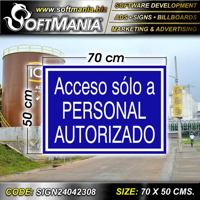 Este producto Material Publicitario PVC 3 Milimetros con Rotulacion Full Color con Texto Acceso Solo a Personal Autorizado para Planta Produccion Hidroelectrica marca Softmania Ads de Dimensiones 70x50 Centimetros y muchos mas estan disponibles al por mayor y al detalle en SOFTMANIA. Pregunta por el codigo SIGN24042308. Aprovecha grandiosas ofertas todos los dias!