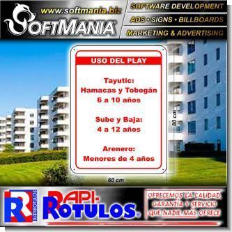 Este rotulo publicitario de la excelente marca Softmania Advertising fue diseñado especialmente para condominio con la mejor calidad y precio. Con el mensaje correcto para llegar a su mercado meta! Fabricado con materiales de alta durabilidad y resistencia: hierro liso, adhesivo full color, tornillos
