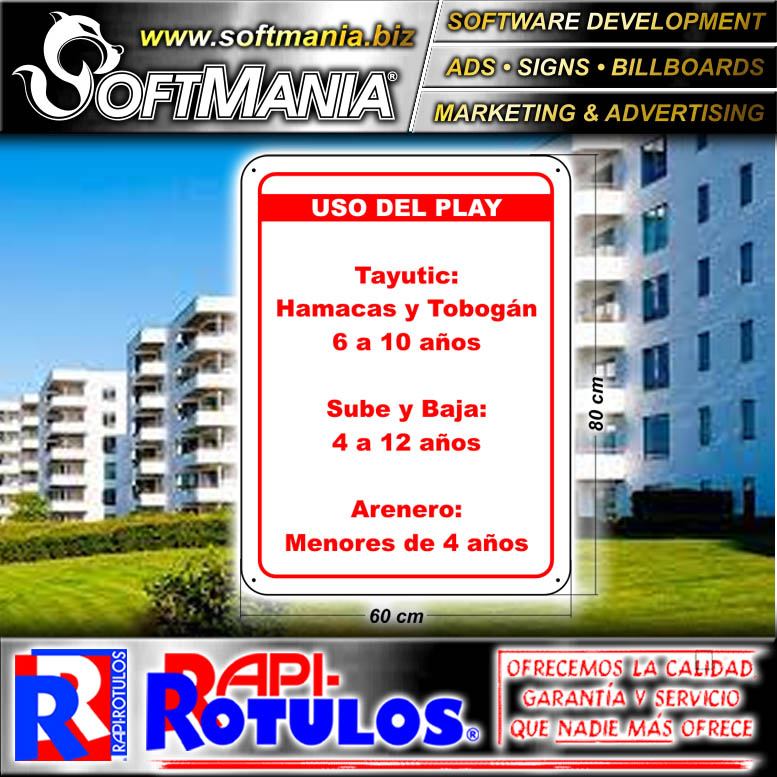 Este producto ROTULO PUBLICITARIO METAL SIN MARCO CON ROTULACION FULL COLOR CON TEXTO EDADES PARA USO DEL PLAY PARA CONDOMINIO MARCA SOFTMANIA ADVERTISING DE DIMENSIONES 60X80 CENTIMETROS y muchos mas estan disponibles al por mayor y al detalle en SOFTMANIA. Pregunta por el codigo SMRR23052301. Aprovecha grandiosas ofertas todos los dias!