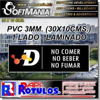 | DESCRIPCION | plastico pvc 3 milimetros con rotulacion en vinil de corte con texto no comer, beber o fumar |